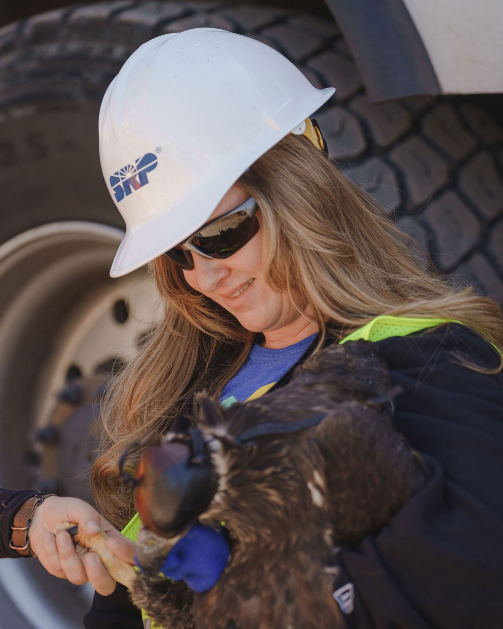 Efforts include the Arizona Bald Eagle Nest Watch Program, a partnership involving 14 different organizations. SRP monitors eagles that nest near dams and power facilities and aims to prevent them from being disturbed by utility operations. SRP also provides equipment such as helicopters and bucket trucks so Game and Fish employees can survey nests and monitor the eagles' health.